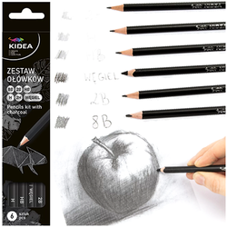 - Zestaw ołówków o różnej twardości oraz węglem do rysowania Kidea.