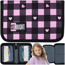 PIÓRNIK SZKOLNY DWUKLAPKOWY ST.RIGHT MAJEWSKI RÓŻOWA SZACHOWNICA SERDUSZKA